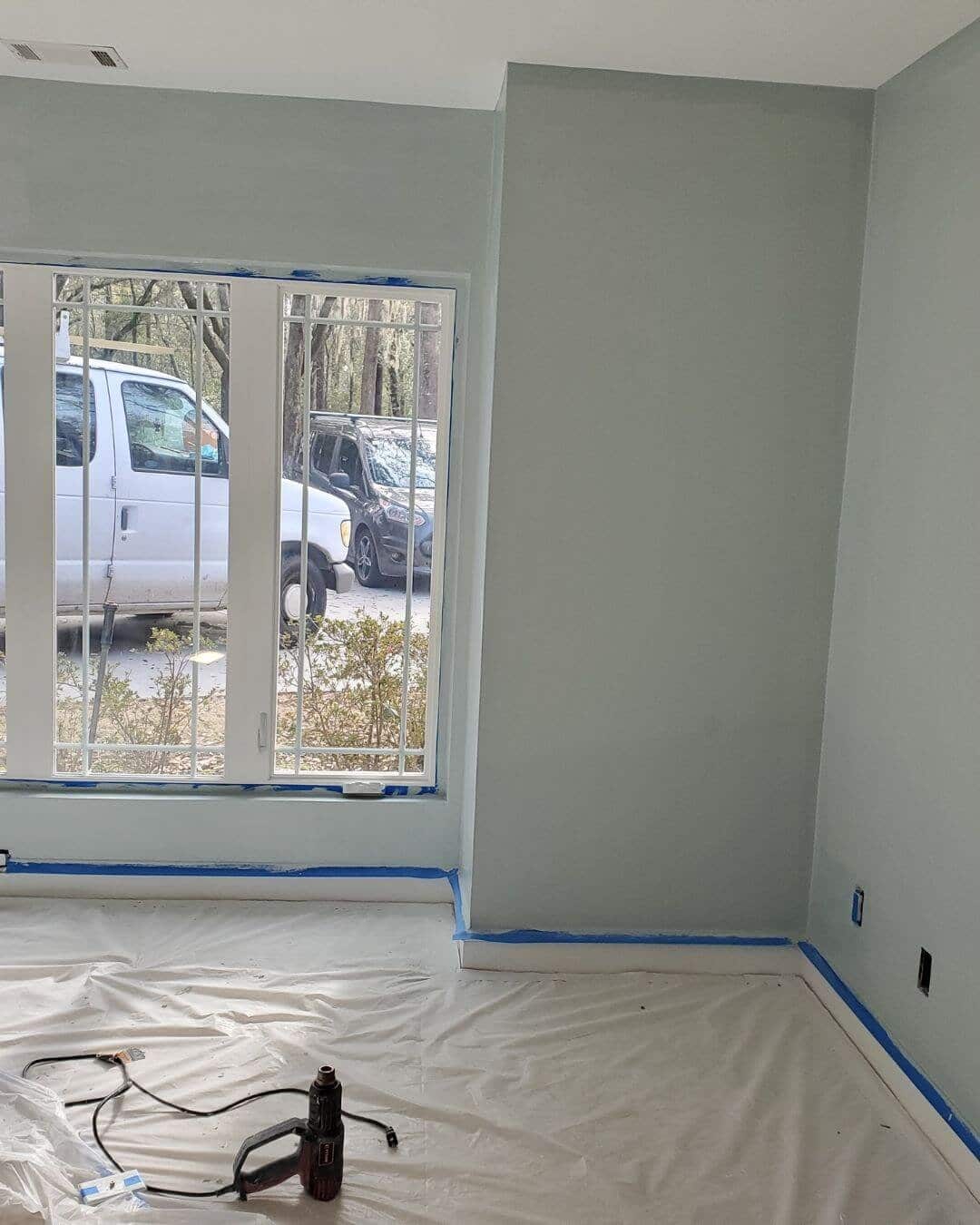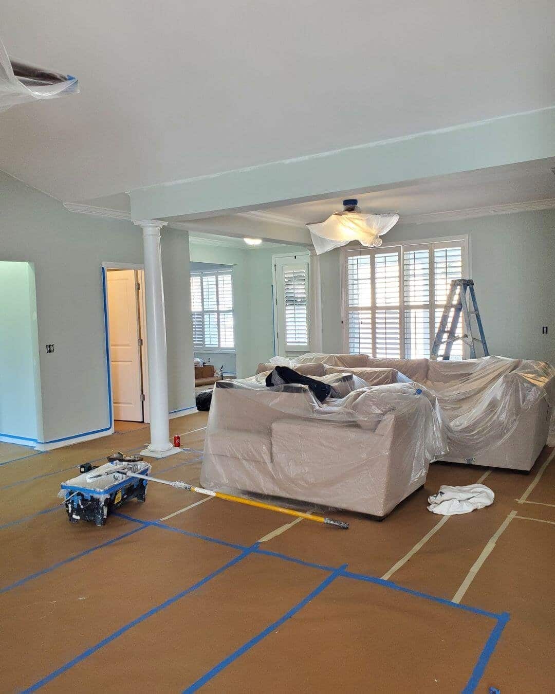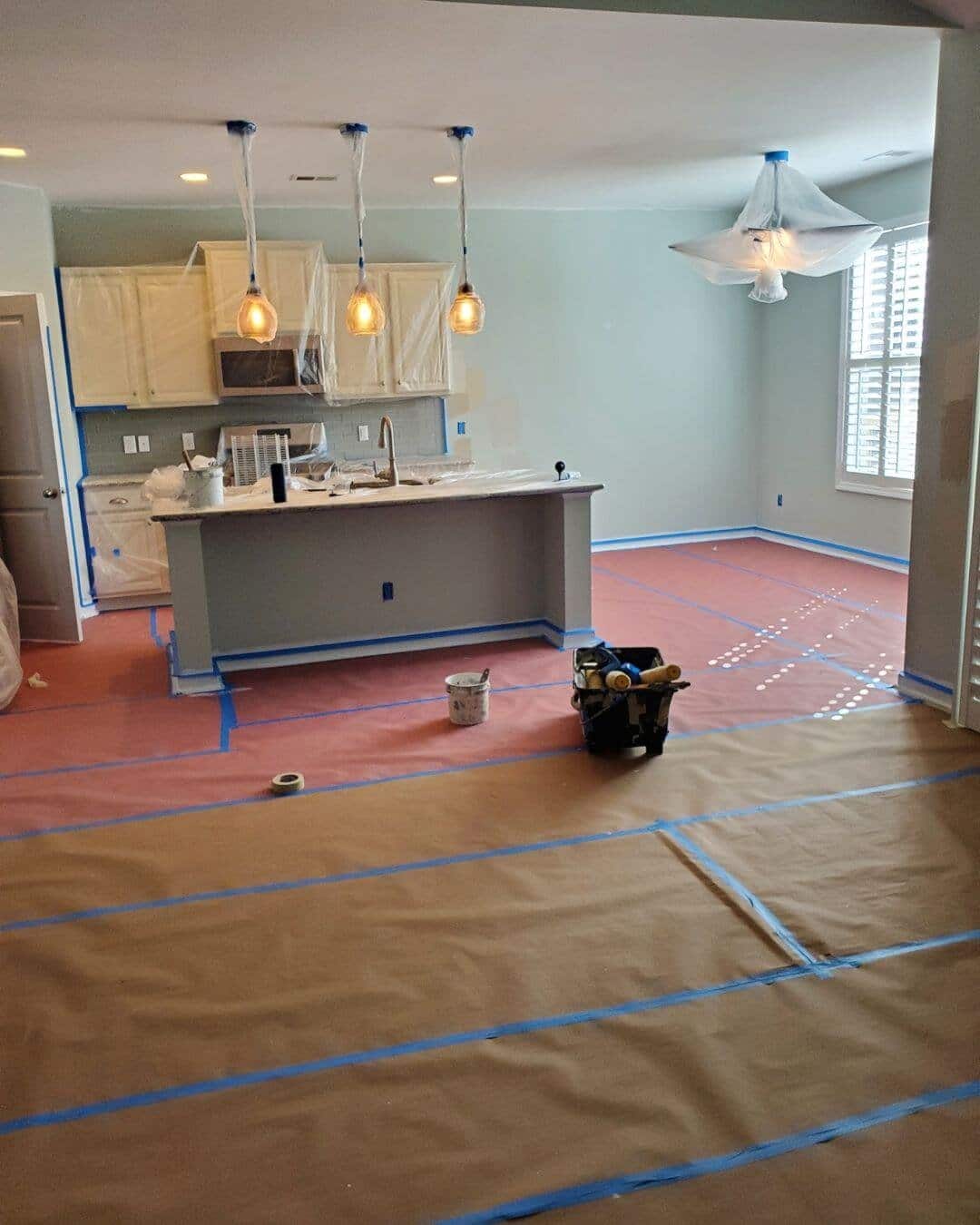 - Careful masking, floor protection, and detailed cut-ins for clean lines